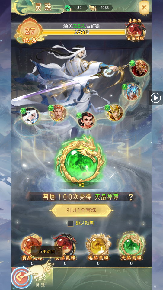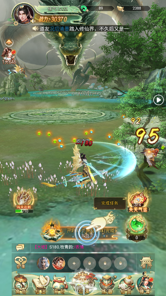 1、进入游戏后,可以看到下方有角色、仙法、背包、炼器、仙灵、神尊等系统,这也是主要提升战力的方式。