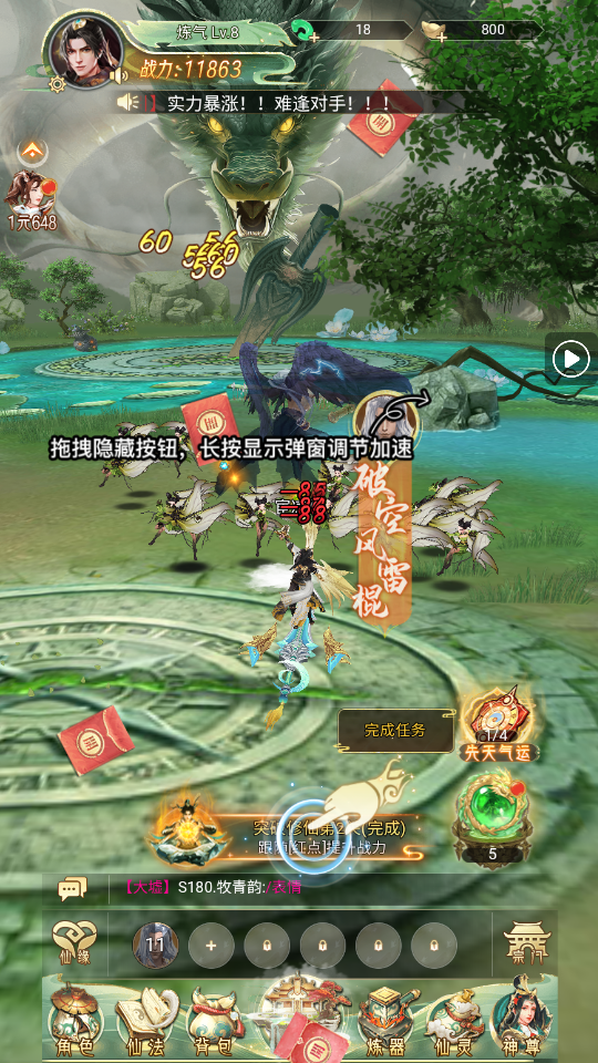 社区互动丰富:宗门系统支持组队挑战与聊天,增强玩家归属感,促进长期留存。