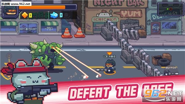 《猫咪枪手游戏》是一款很可爱的像素喵咪射击游戏,游戏采用的是自动瞄准,玩家只需要射击就可以了,减少瞄准这一操作,为玩家降低了难度,游戏中玩家可以控制各种可爱的猫咪来完成闯关任务,击败你的敌人,最后的计分将会以玩家游戏结束时间及剩余血量为依据,完成的越好得分越高。
