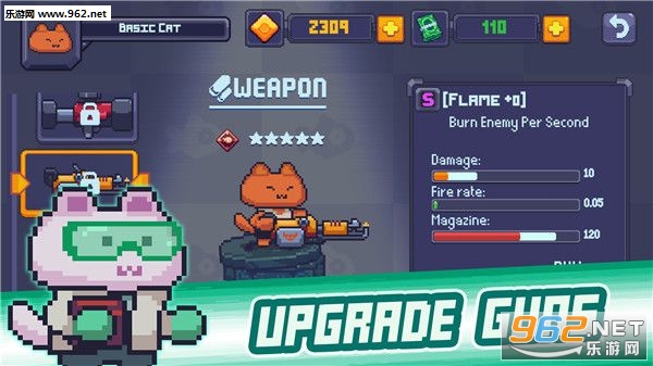 带有一些个人英雄主义色彩的背景给这款游戏加上了很大的亮点,猫射手还加入了角色扮演游戏的一些特点,比如游戏中的小鸟可以通过闯关获得的经验进行升级,每一次升级我们都会获得一定的属性点,属性点可以用来升级攻击、生命值、魔法值以及暴击率等各项属性。