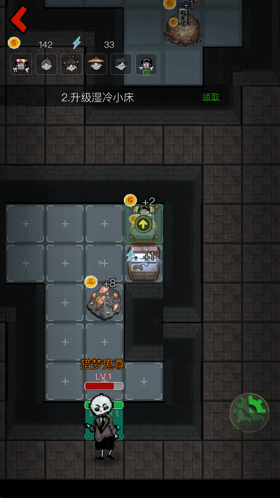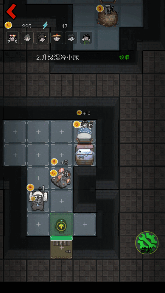 2、你会在游戏中放置炮塔保护宿舍中的人物,使用各种炮塔击败凶鬼的攻击。