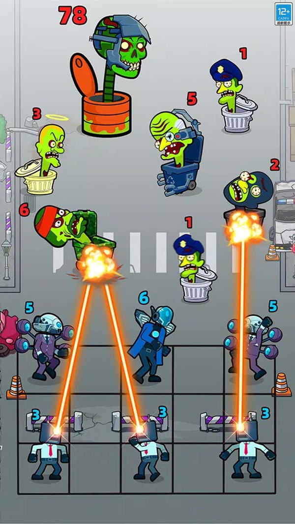 《马桶人进化对决》是一款将合成与塔防相结合的休闲游戏。游戏以两方对决的方式进行,每一方都拥有自己的棋盘,棋盘上的两个相同等级的怪兽可以进行合并,也可以根据对手的棋盘布局,移动自己的怪兽进行调整。争取对决的胜利,赢得奖金,利用奖金购买新的怪兽,然后合成升级,成为最强的那一个吧!
