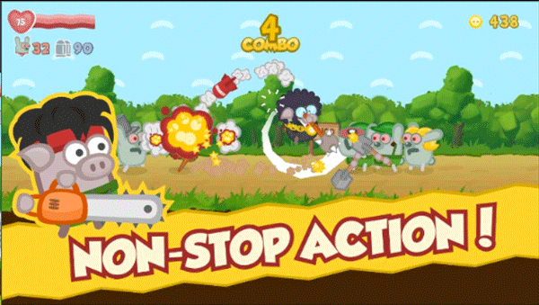 无双战斗小猪的主角是一只外形非常可爱的小猪,但是在战斗的时候它又显得非常残暴,游戏中的关卡模式和玩法内容都是经过精心设计的,玩家可以通过屏幕虚拟按钮来控制你的小猪动作,并随意切换各种强力的武器去进攻和防守,游戏操作十分简单,新手玩家按照游戏指引也可以轻松上手体验,看看谁的小猪更厉害!