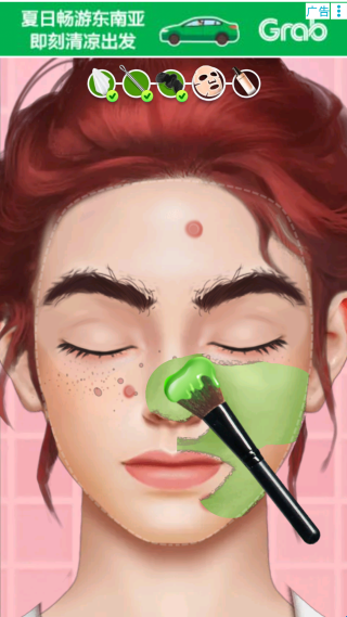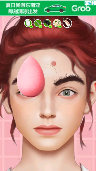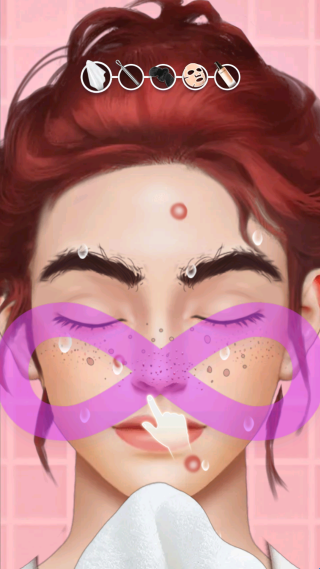 1、选择关卡场景与客户,进入化妆台界面,按步骤完成清洁、打底、眼妆、唇妆等流程。
