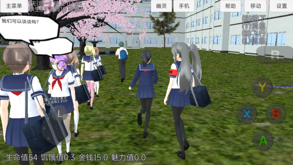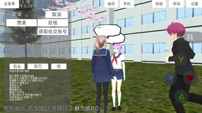 1、进入校园当中,扮演一名高中生,可以与不同的角色进行互动对话。