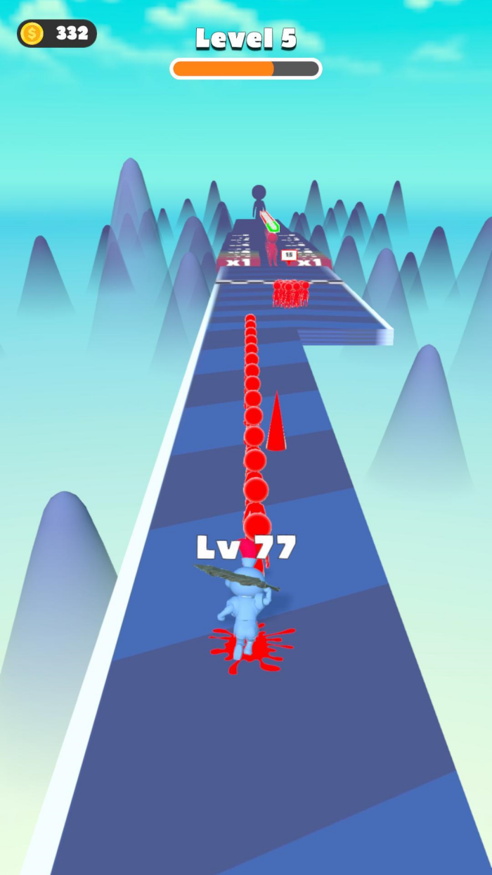 1、通过收集赛道中的道具、武器来为小人进行升级,以应对更加复杂的场景和挑战,丰富的关卡等你挑战;