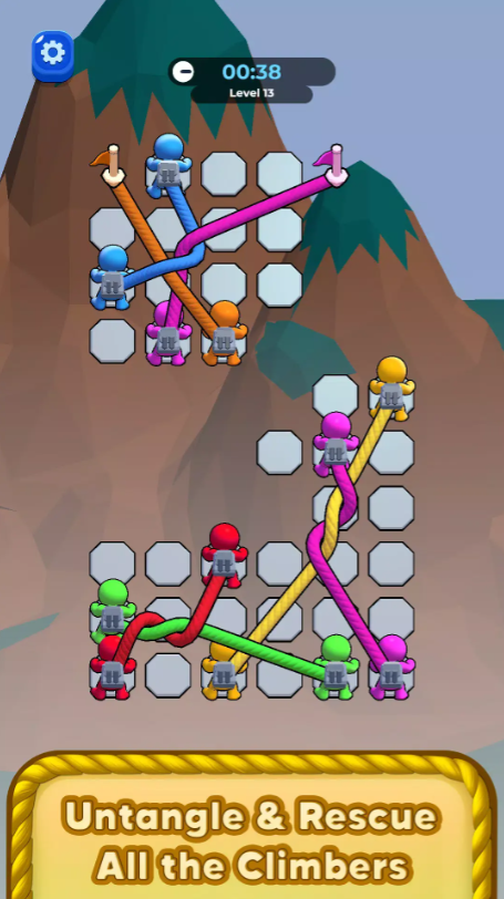 纠结爬山是一款趣味解绳子小游戏,玩家们需要帮助登山人员将绳子解开,其过程也是非常讲究技巧的,仔细观察每种绳子缠绕规律,掌握技巧即可快速通关!内置关卡丰富,每一关其难度都是不一样的,非常考验玩家们的逻辑思维能力,感兴趣的小伙伴们快来下载体验吧!