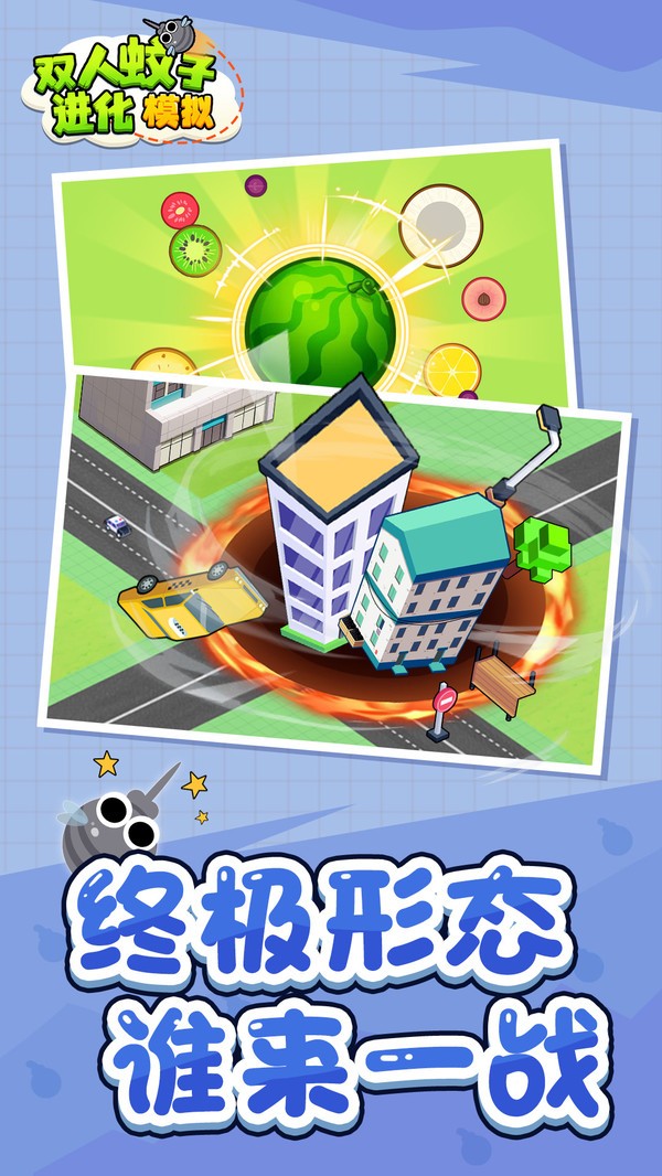 双人蚊子进化模拟的玩法以模拟和扮演蚊子为主题,游戏中玩家将化身成为一只讨厌的蚊子,体验一下蚊子的生活,你可以通过游戏提供的按钮来控制蚊子的动作,并努力生存下去,要知道蚊子可是非常脆弱的,玩家们在进行模拟的时候也一定要注意保护自身安全,必要时也可以切换其他的蚊子皮肤进行体验。