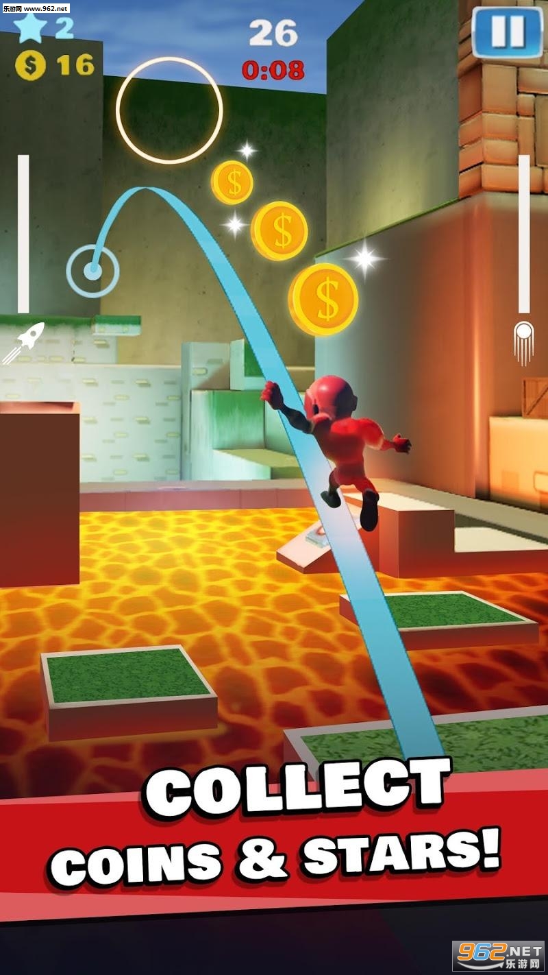 这是一款画风简单的动作冒险手游,控制火箭骑士捕捉空中的星星,想要顺利通用关卡,你需要收集更多的金币换取道具,关卡众多,难度递增!