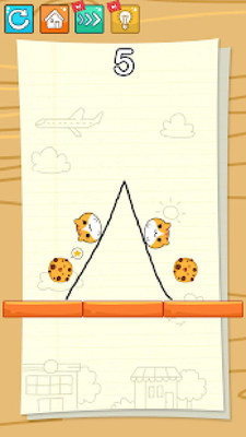 非常好玩的一款物理画线游戏,游戏的画风非常的卡通可爱,整体的操作玩法属于传统的画线游戏,当猫头下落的过程总,在它行进的路线上画上线段让它运动起来并且准确的碰到饼干即可,非常逼真的物理现象哦。
