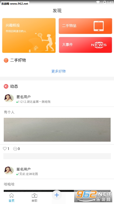 除了找兼职,找活动,还有更多校园热点等你吐槽,更多二手好货变废为宝,和有趣的人一起同行出发,参与一次公益社团活动...