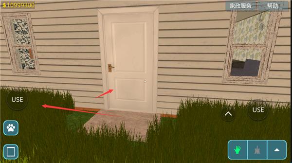 2、成功进入房间,点击右下角的这个图标可以使用道具来打扫垃圾;