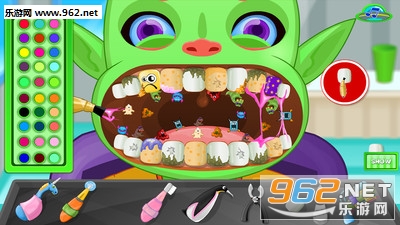 在游戏中,你能消灭所有口腔细菌,清楚可能裂开的齿洞,清除粘黏在牙齿上的口香糖,拔掉虫蛀或裂开的牙齿。完成这些后,接着你就可以开始清洗牙齿,用不同的颜色装饰牙齿。 有了疯狂牙医这款游戏,看牙医不再让人恐惧。