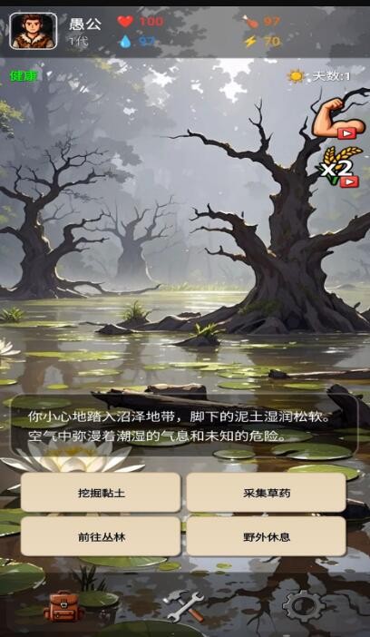 愚公海岛生存GenerationIsle是一款荒岛生存类小游戏,一切从零开始,根据游戏内文字提示作出正确的选择,你的每一步都将影响其最终结局走势喔!尽可能收集资源,建造避免所、寻找食物,在这座荒岛上生存下去!游戏整体可玩性极高,喜欢生存类游戏的玩家们可以来试试看喔!