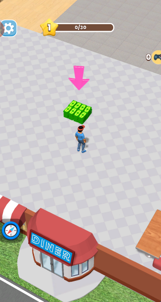 2、跟着箭头的指示进行操作,收集各种物品与资源,为开店做准备。