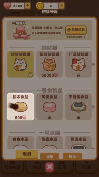 5.游戏左上角的招财猫还会收集猫咪给的爱心,玩家可以点进去领取;