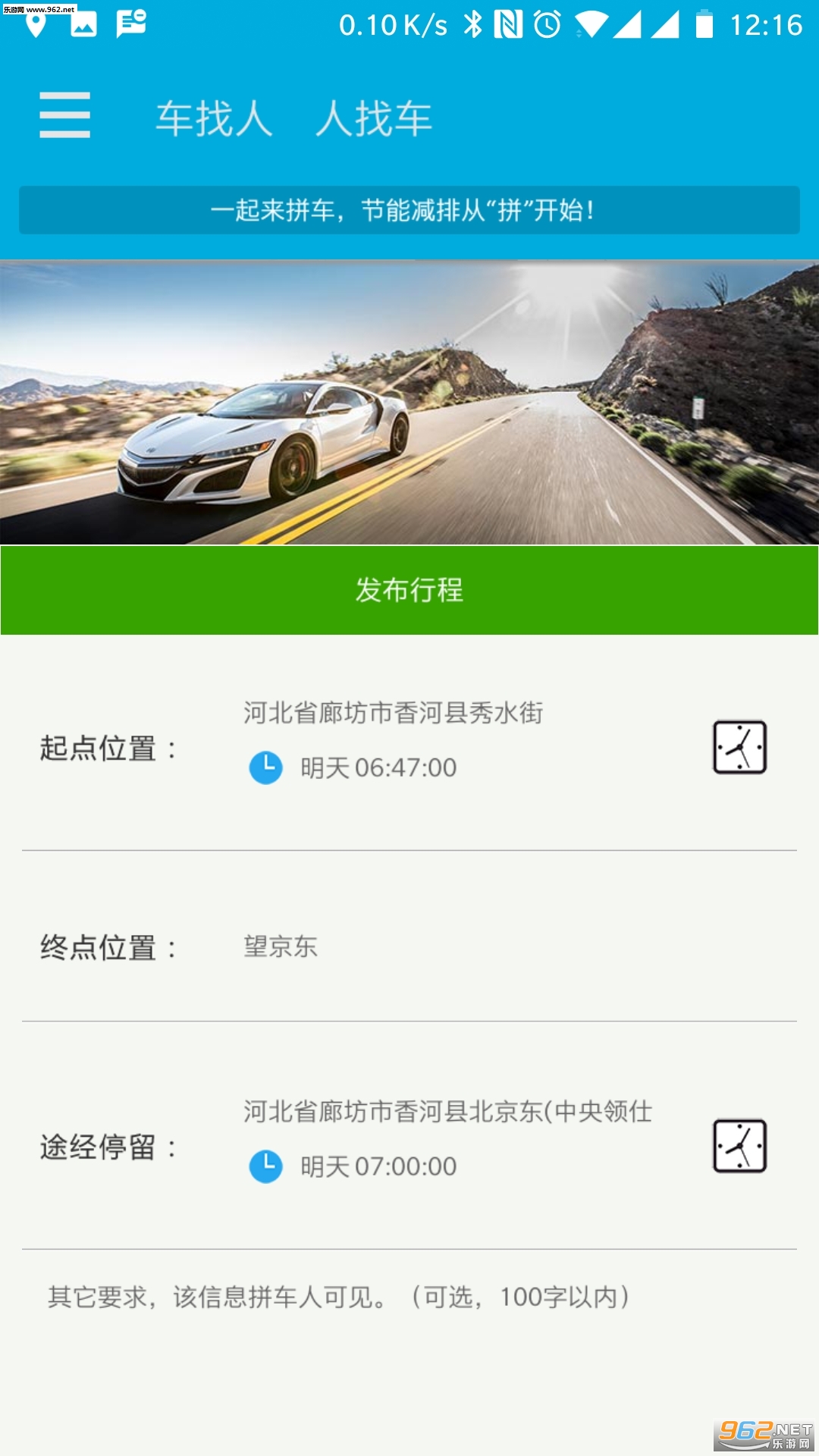 秒秒钟发布拼车信息,一键匹配出行线路