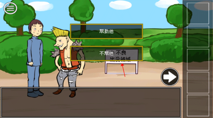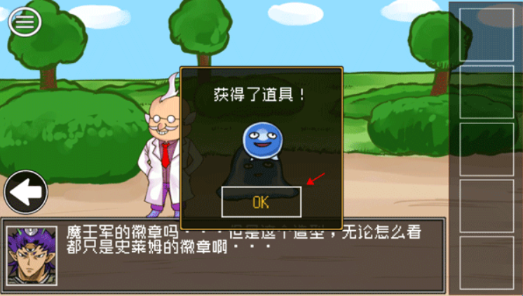 点击左侧学生-选择【不帮他】,然后画面切换至右侧-点击右边的史莱姆-获得【徽章】,画面切回左侧-对着学生使用道具【徽章】。