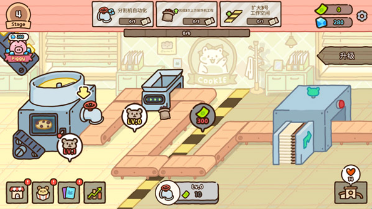 仓鼠点心工厂是一款可以制作曲奇饼干的经营类小游戏,整体为卡通风格,根据任务制作饼干,每完成一份订单都可以获取丰厚的奖励,可以用来扩建工厂、升级机器、招聘员工,加大生产力,提高收益。该游戏非常考验玩家们的经营策略,掌握技巧,将你的点心工厂做大做强吧!