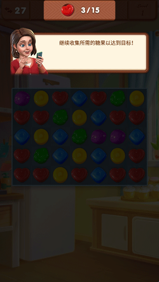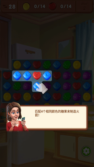 2、进入关卡,匹配3个相同颜色的糖果来收集他们