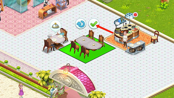 9、在餐厅界面进行移动,放置到合适的位置后,选择【打勾】图标,即可放置完成,接下来就是不断地为顾客出餐,装扮自己的餐厅,以上就是明星厨师2烹饪游戏攻略了。