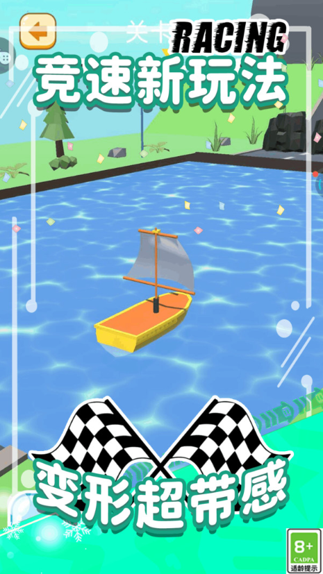 2、开启在复杂多变的赛道上飞驰的征程,逐渐熟悉赛道机关与变身节奏。