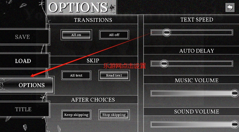 1、在游戏内的设置界面可以看到,没有语言设置项,游戏默认语言为英文版本。