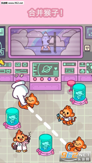 玩家可以合成各种各样的可爱猴子,如好奇的乔、达尔文等等,而且猴子可以产生收益,让你能够升级科技水平,促进探索宇宙计划的发展!