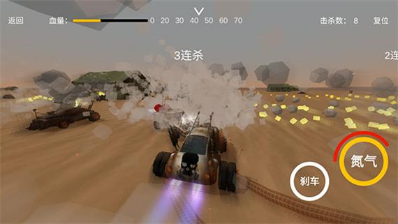 3、涵盖单人竞速、多人对战等多种模式,多人对战支持实时联机,十几辆战车在荒漠中狂飙撞击。