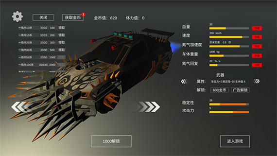 6、获得的金币可以解锁更好的车辆和武器,解锁成就还能获得额外金币。