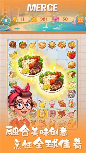 2、合并机制与烹饪结合在一起,玩家需要避免格子被占满,兼具休闲性与轻度策略性。