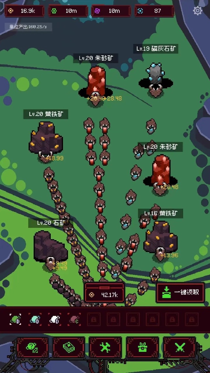 多元挖矿机制:在《为虫群来袭》中,挖矿不仅是为了获取资源,更是一次次充满策略的探险。不同的星球拥有不同的矿产资源,玩家需要根据自己的需求与战略选择合适的星球进行开采,同时还需要面对各种复杂的环境与危险。