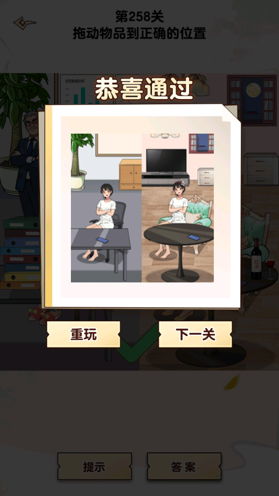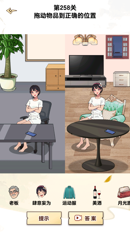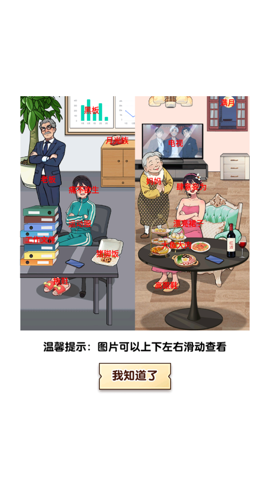4、最后是需要玩家下拉的手提袋和上滑红衣服女孩口袋里的手机。