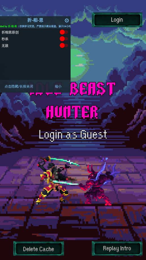 《野兽猎人》(Idle Beast Hunter)是一款像素风格的冒险RPG游戏,将玩家带入一个充满未知与挑战的世界。在游戏中,你将扮演一名勇敢的猎人,穿越危机四伏的洞穴,与各种奇特的野兽和邪恶势力展开较量。通过击败敌人,你可以收集他们的掉落物品来提升自己的武器装备,甚至用他们的灵魂来解锁新的能力和技能。挑战模式下,你将面对随机生成的装备和关卡,每一次冒险都充满新鲜感。