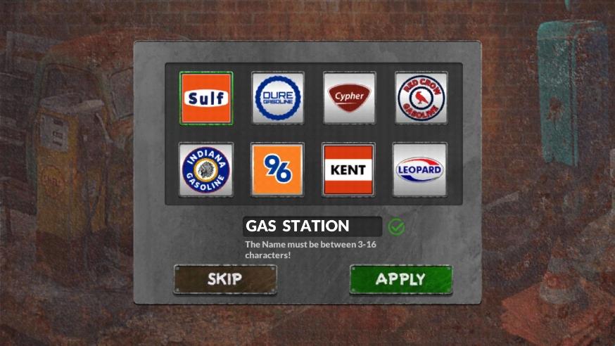 1、首先,玩家在本站下载并安装好游戏之后,打开进入,给自己的加油站取一个好听的名字以及标志;