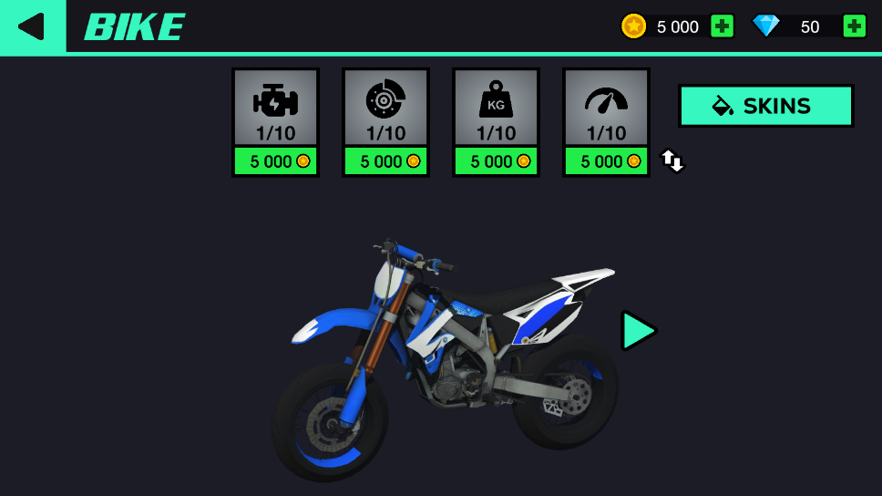具有个人和在线模式,您可以加入或创建房间与朋友和更多玩家一起玩。它有各种各样的地图和自行车,您可以使用不同的皮肤进行升级和自定义。此外,您还可以使用不同的头盔、护目镜和手套来定制您的骑手。
