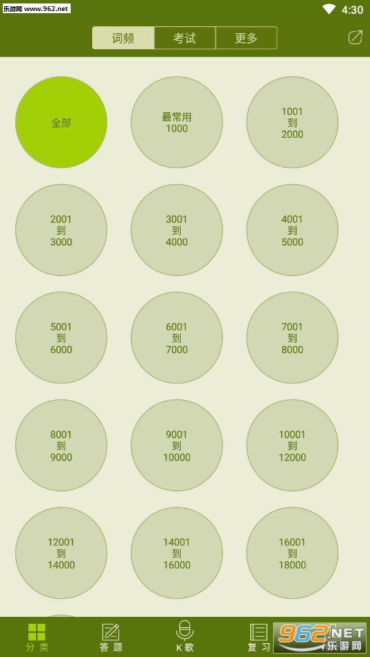 3.单词通关:总共100级,可以逐级攀登,也可以跳级;可以按照词频即常用性选择通关词汇,也可以专攻各类考试词汇,还可以只玩某部文学作品的词汇,例如哈利波特;错题自动进入错题本,点击’复习’按钮可以重做错题,或复习生词;点击’排行’可以查看自己和别人的排名。
