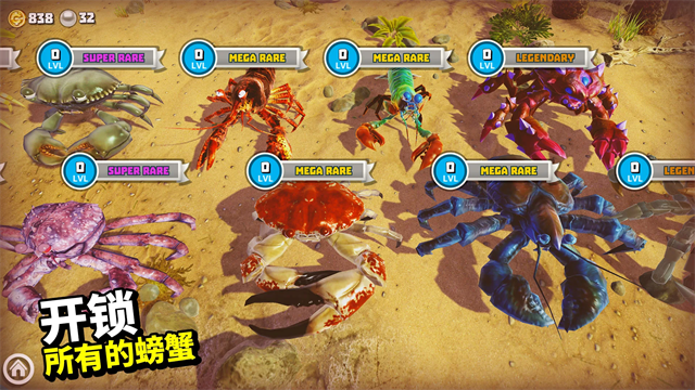 收集、升级和发展各种螃蟹。探索高级技能并收集独特的皮肤。