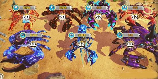 1、螃蟹之间的作战实力会随着战斗力的提升壮大体型,有着不同的作战武器展开攻击