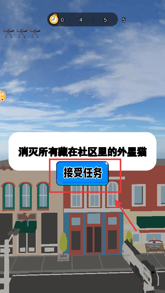 1、出现【消灭所有藏在社区里的外星猫】任务,点击【接受任务】,进入社区场景开启目标搜寻。