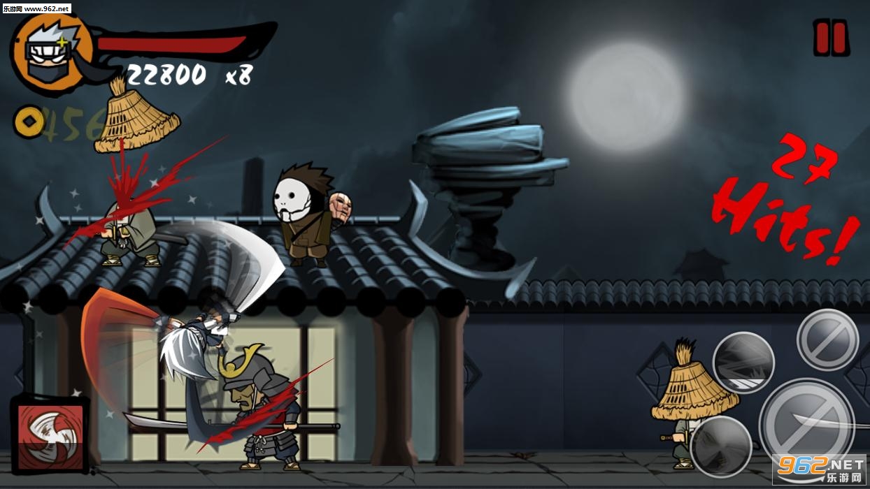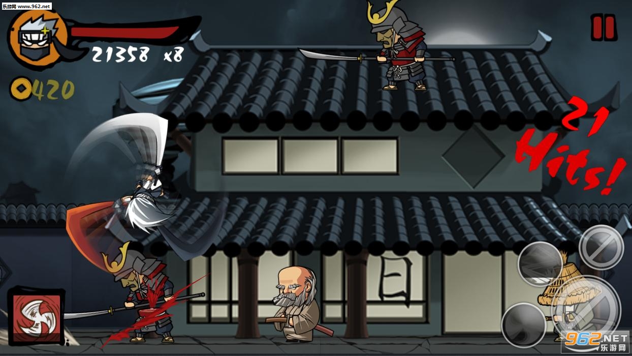 《复仇忍者 Ninja Revenge》是一款横版忍者系列动作类游戏。简简单单的触屏+控制按钮控制,却能做出种类繁多的动作。出刀要准、狠,才能够替自己的妻子报仇,血债要血来偿!