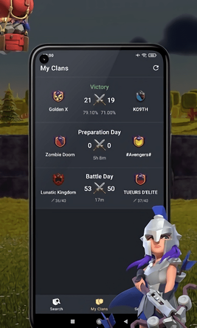 2、将您喜爱的部族添加到列表中,一目了然地看到所有正在进行的部落战争;