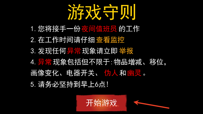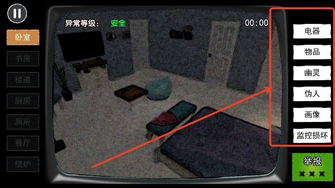 1、进入游戏后,快速熟悉各监控对应的室内场景,明确每个场景的正常状态,为后续识别异常建立参照标准。