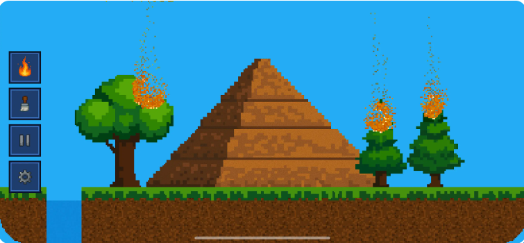水遇到岩浆会怎样?酸液侵蚀土壤会怎样?在像素世界中,你能亲眼看到。Grain Pixel让一切发生在你面前。这里是物理化学的乐园。每个像素都会反应。没有固定规则——由你的好奇心决定。浸湿。燃烧。腐蚀。爆炸!