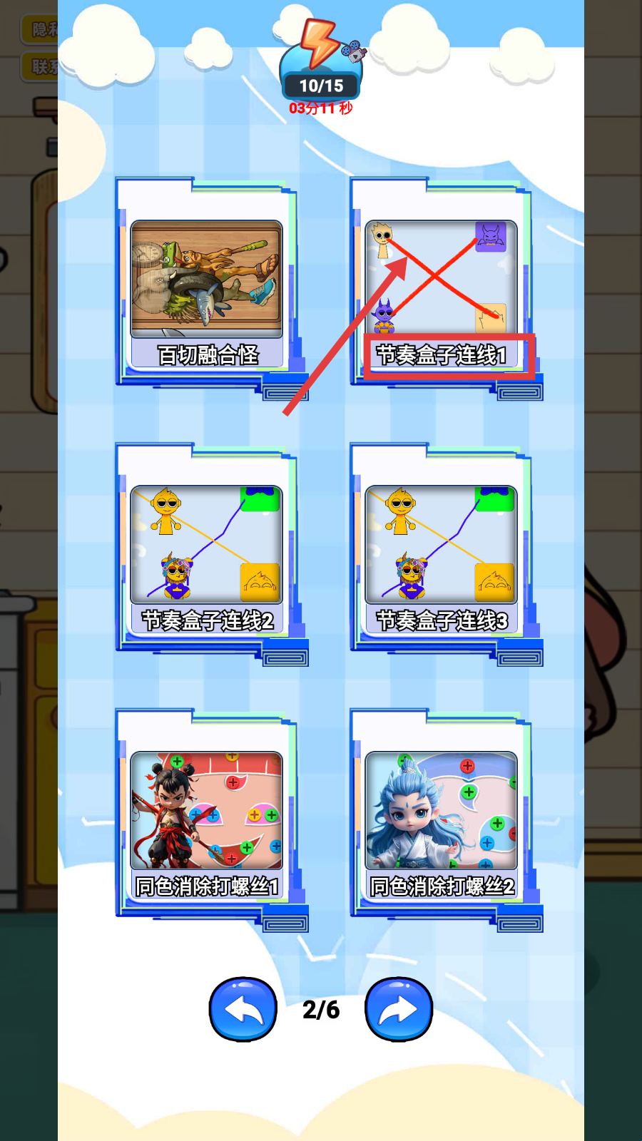 1、在关卡选择界面,找到【节奏盒子连线1】关卡,点击进入,准备开启连线挑战。