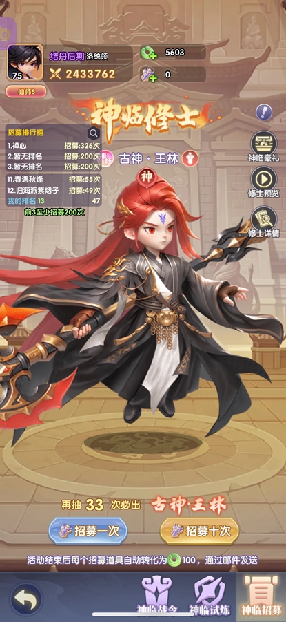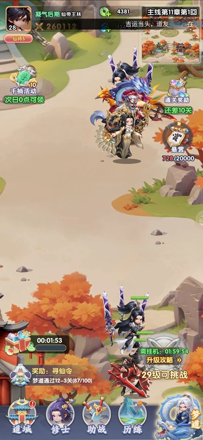 游戏中,您将扮演一名身怀绝技的修真者,踏上逆天修行的道路。创新的修炼体系、丰富的角色搭配、刺激的副本挑战、以及紧张刺激的多人PVP/PVE玩法,将带给您前所未有的游戏体验,新手不烧脑,按游戏推荐搭配角色阵容即可!无论是独自探索未知领域,还是与好友并肩作战,都能让您感受到修真的乐趣与激情。