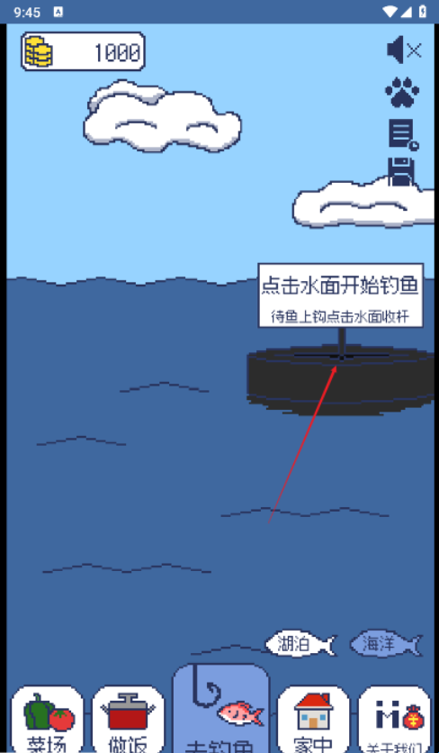 1、点击水面钓鱼