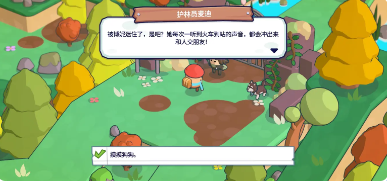 除主线解谜外,玩家可结交公园中的NPC角色,触发支线任务;还能与场景中的小狗互动,增添生活气息。
