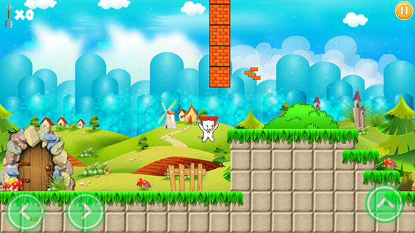 3、游戏的难度实在是高到让人发疯,游戏中有很多让人意想不到的陷阱,比如跳跃壕沟的时候头顶上会莫名其妙的多出一个砖块而让你掉进壕沟、好好的地面突然会塌陷下去、眼看过关了又有个不明飞行物将你砸死。