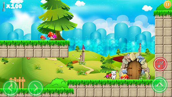 2、经典虚拟按键控制,通过控制猫里奥左右移动、跳动,可踩死路上的乌龟、蘑菇等小怪物,尽量多的搜集金币,到达终点跳上旗子,就可以顺利过关啦。